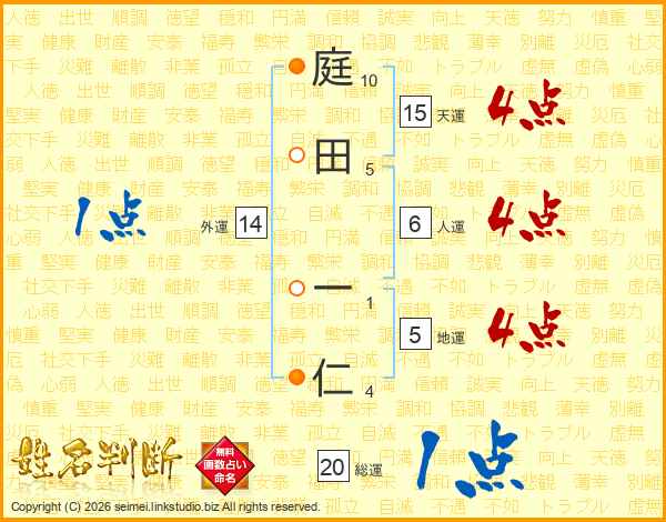 庭田一仁さんの外運は14画の1点!