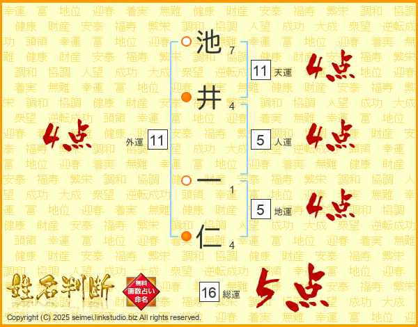 池井一仁さんの総運は16画の5点!