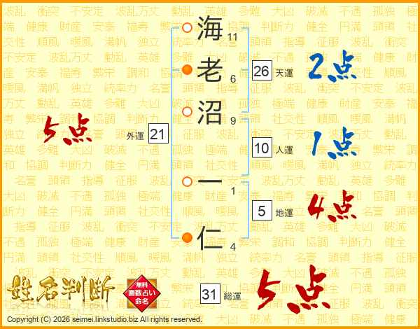 海老沼一仁さんの天運は26画の2点!