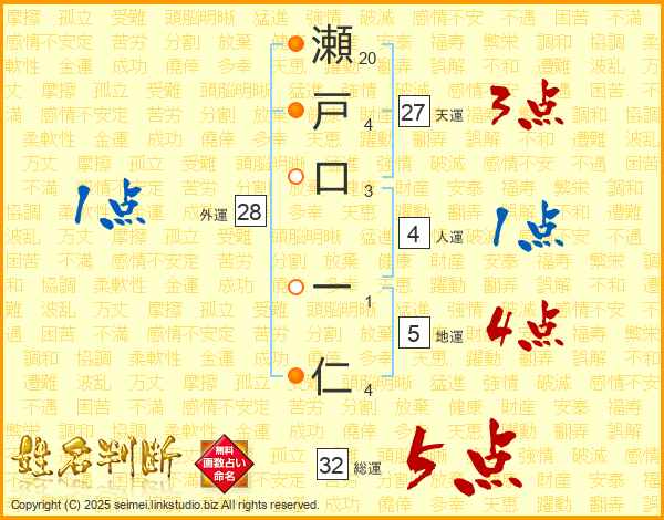 瀬戸口一仁さんの総運は32画の5点!