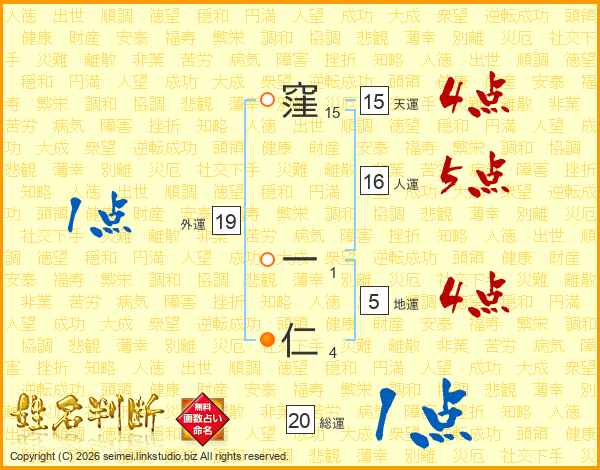 窪一仁さんの天運は15画の4点!