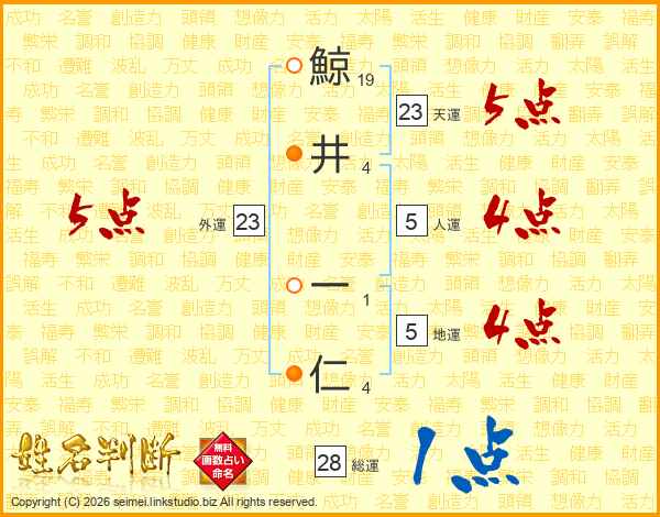 鯨井一仁さんの天運は23画の5点!