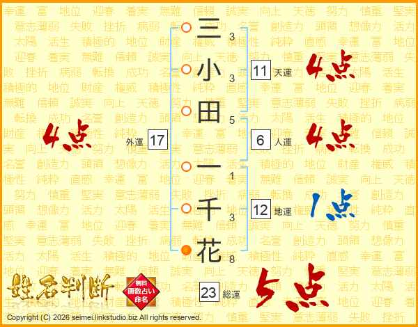 三小田一千花さんの天運は11画の4点!