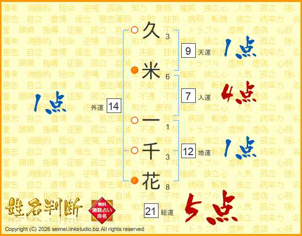 久(3画)米(6画) 一(1画)千(3画)花(8画)