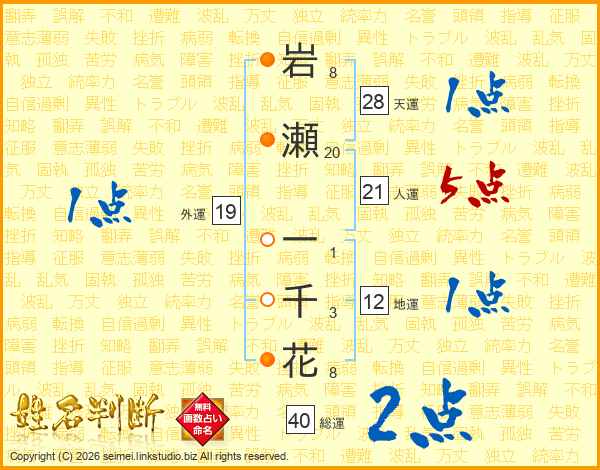 岩瀬一千花さんの総運は40画の2点!