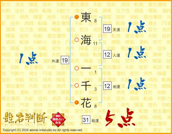 東海一千花さんの総運は31画の5点!