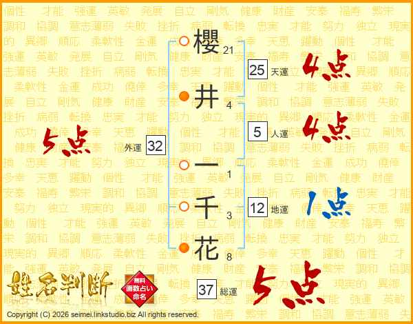 櫻(21画)井(4画) 一(1画)千(3画)花(8画)