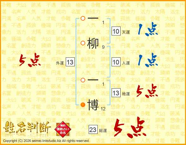 一柳一博さんの総運は23画の5点!