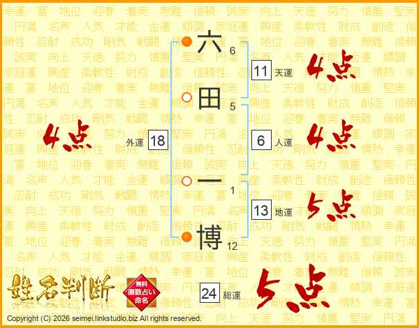 六田一博さんの総運は24画の5点!