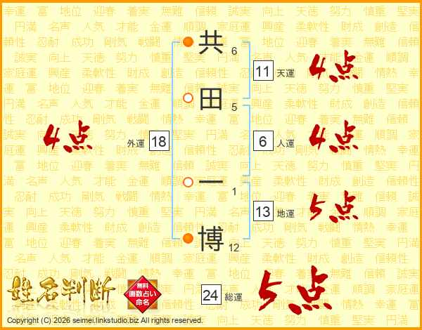共田一博さんの総運は24画の5点!