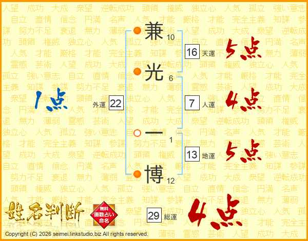 兼光一博さんの総運は29画の4点!