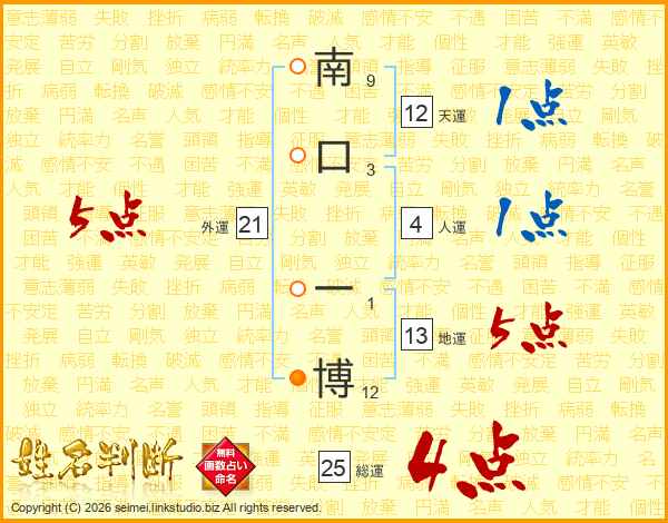 南口一博さんの地運は13画の5点!