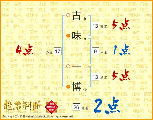 古味一博さんの天運は13画の5点!
