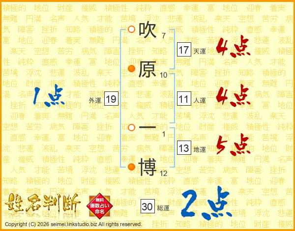 吹原一博さんの総運は30画の2点!