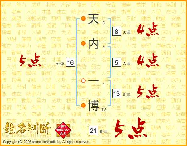 天内一博さんの総運は21画の5点!