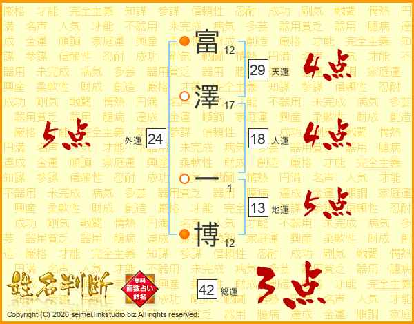 富(12画)澤(17画) 一(1画)博(12画)