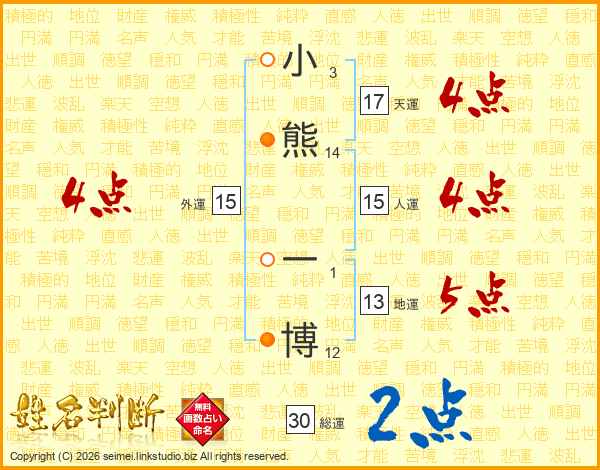 小熊一博さんの人運は15画の4点!
