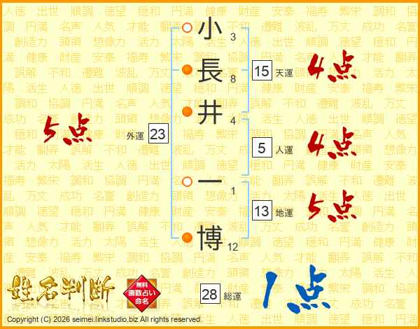 小長井一博さんの天運は15画の4点!