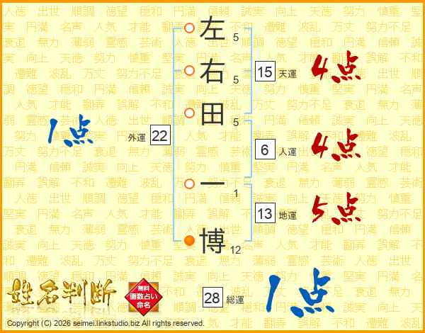 左(5画)右(5画)田(5画) 一(1画)博(12画)