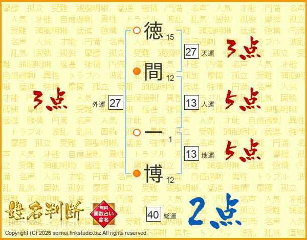 徳間一博さんの天運は27画の3点!