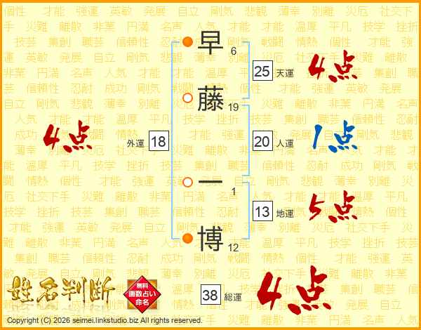 早藤一博さんの総運は38画の4点!