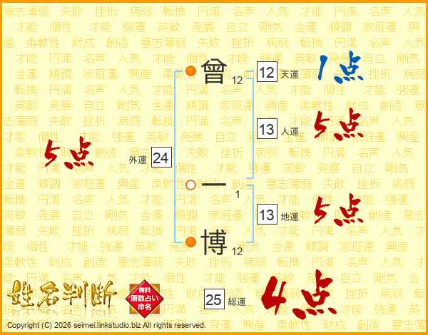 曾一博さんの総運は25画の4点!