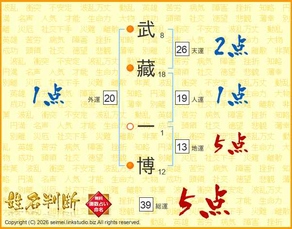 武藏一博さんの総運は39画の5点!