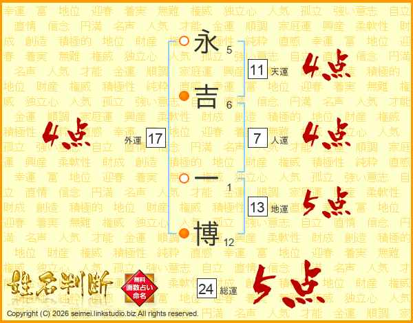 永吉一博さんの総運は24画の5点!