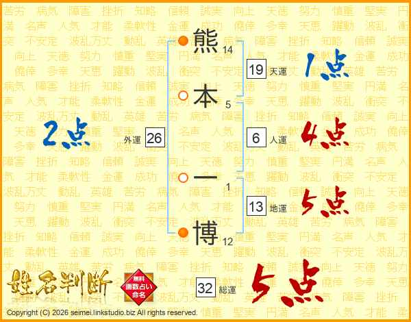 熊本一博さんの総運は32画の5点!