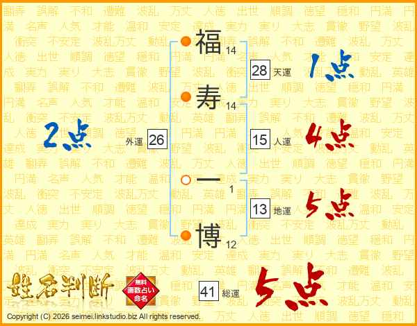 福寿一博さんの総運は41画の5点!