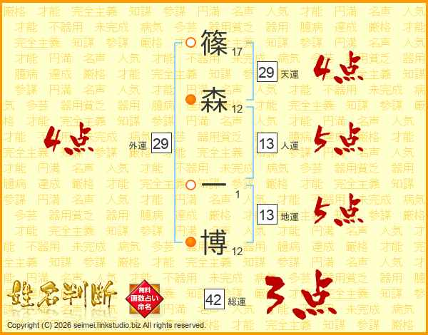 篠森一博さんの人運は13画の5点!