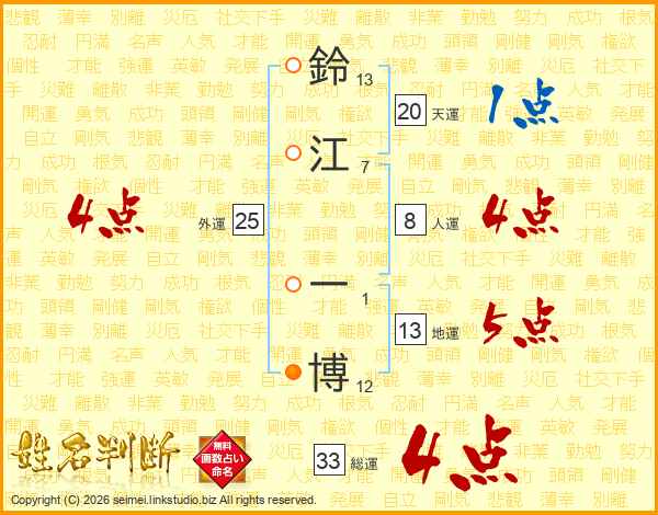 鈴江一博さんの地運は13画の5点!