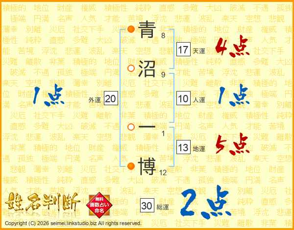 青沼一博さんの天運は17画の4点!