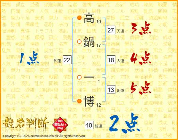 高鍋一博さんの天運は27画の3点!