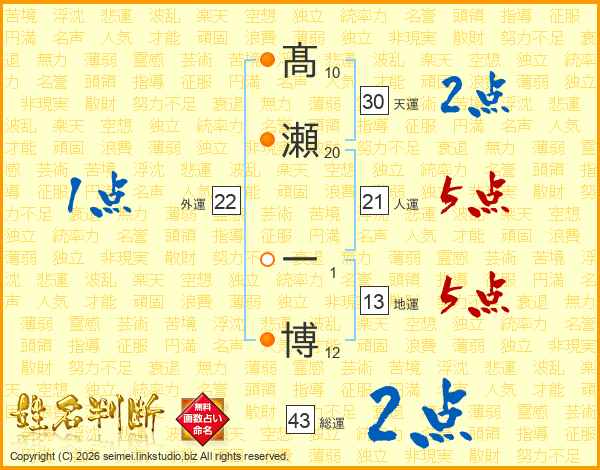 髙瀬一博さんの地運は13画の5点!