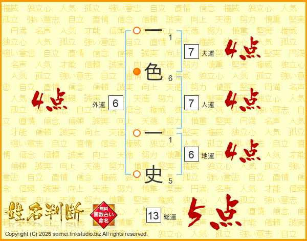 一色一史さんの総運は13画の5点!