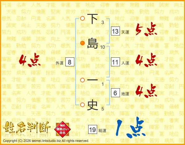 下島一史さんの天運は13画の5点!