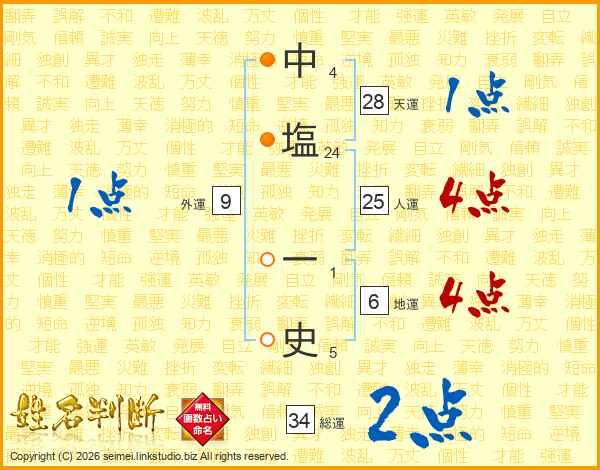 中塩一史さんの総運は34画の2点!