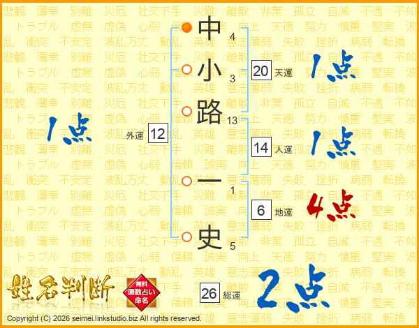 中(4画)小(3画)路(13画) 一(1画)史(5画)