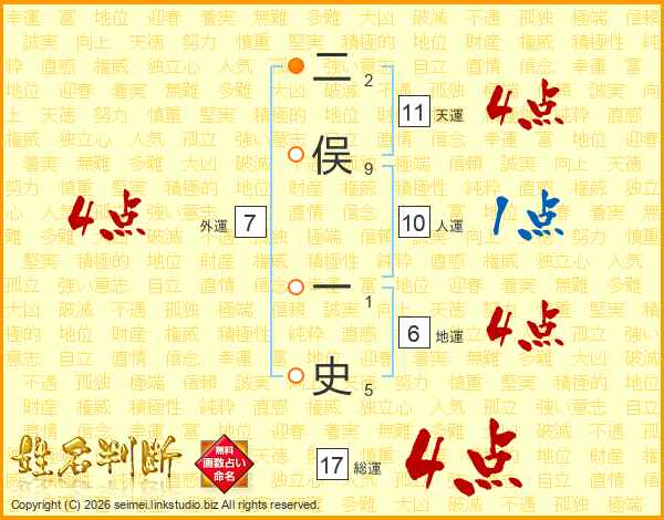 二俣一史さんの総運は17画の4点!