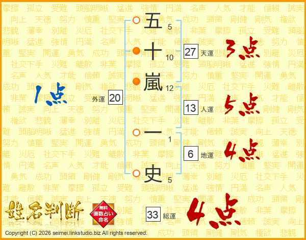 五十嵐一史さんの総運は33画の4点!