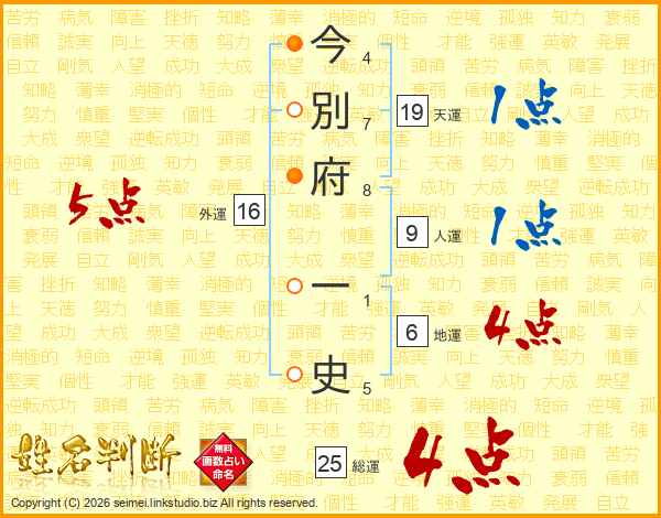今別府一史さんの総運は25画の4点!