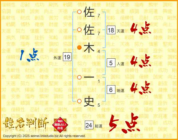 佐(7画)佐(7画)木(4画) 一(1画)史(5画)