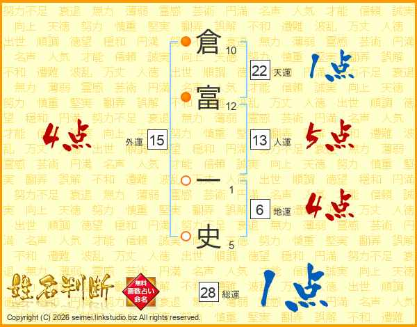 倉富一史さんの天運は22画の1点!