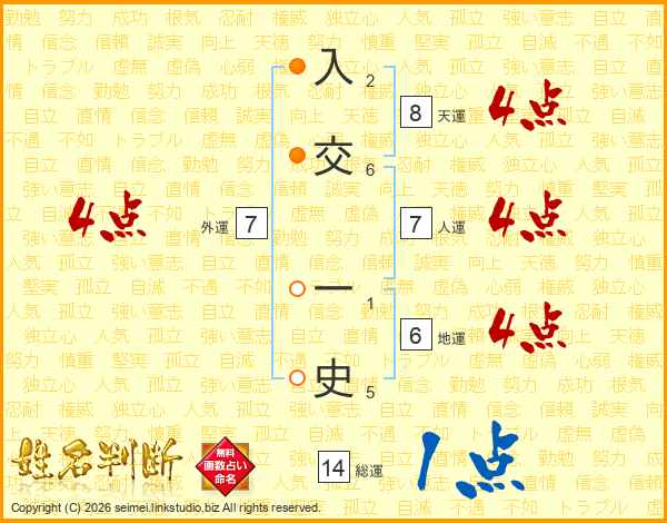 入交一史さんの総運は14画の1点!