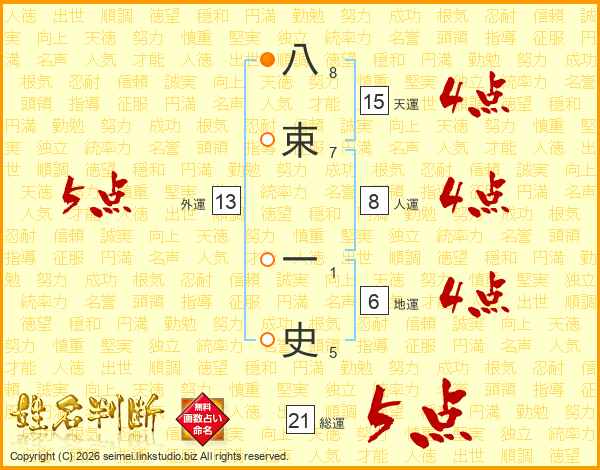 八束一史さんの総運は21画の5点!