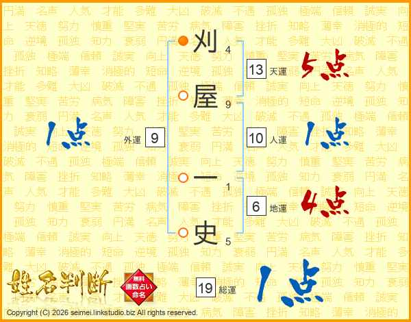 刈屋一史さんの天運は13画の5点!