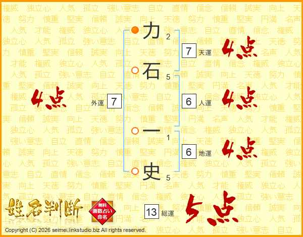 力石一史さんの総運は13画の5点!