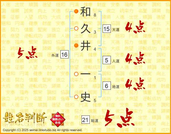 和(8画)久(3画)井(4画) 一(1画)史(5画)