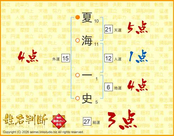 夏海一史さんの天運は21画の5点!